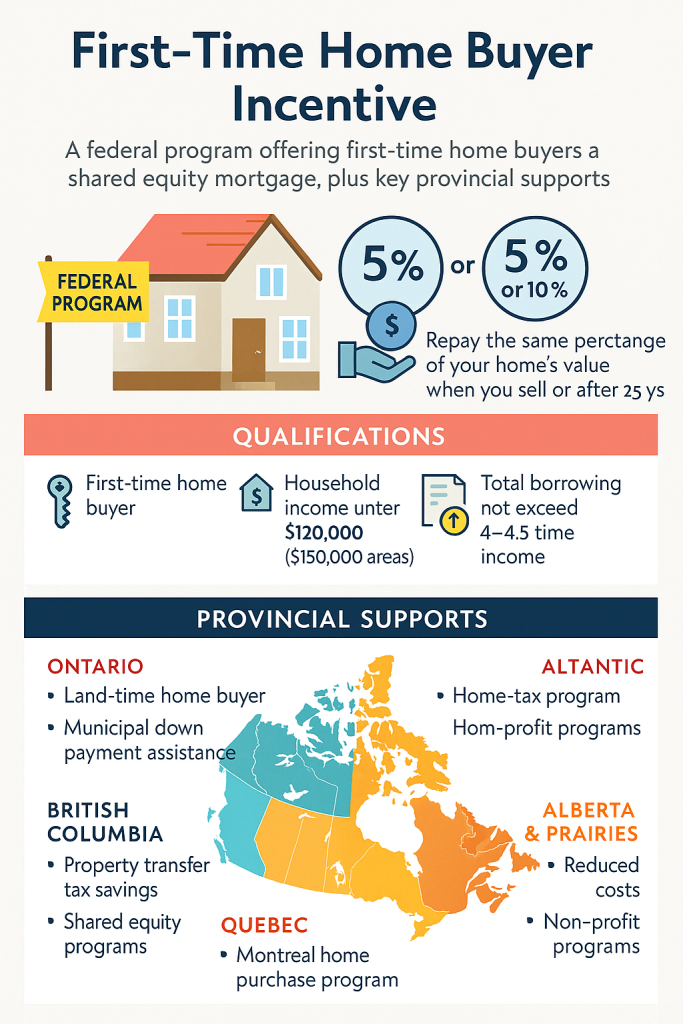 If you’re looking to buy your first home, it’s worth exploring local incentives—some of which can be combined with the Home Buyers’ Plan (HBP) or the First Home Savings Account (FHSA) for maximum benefit.